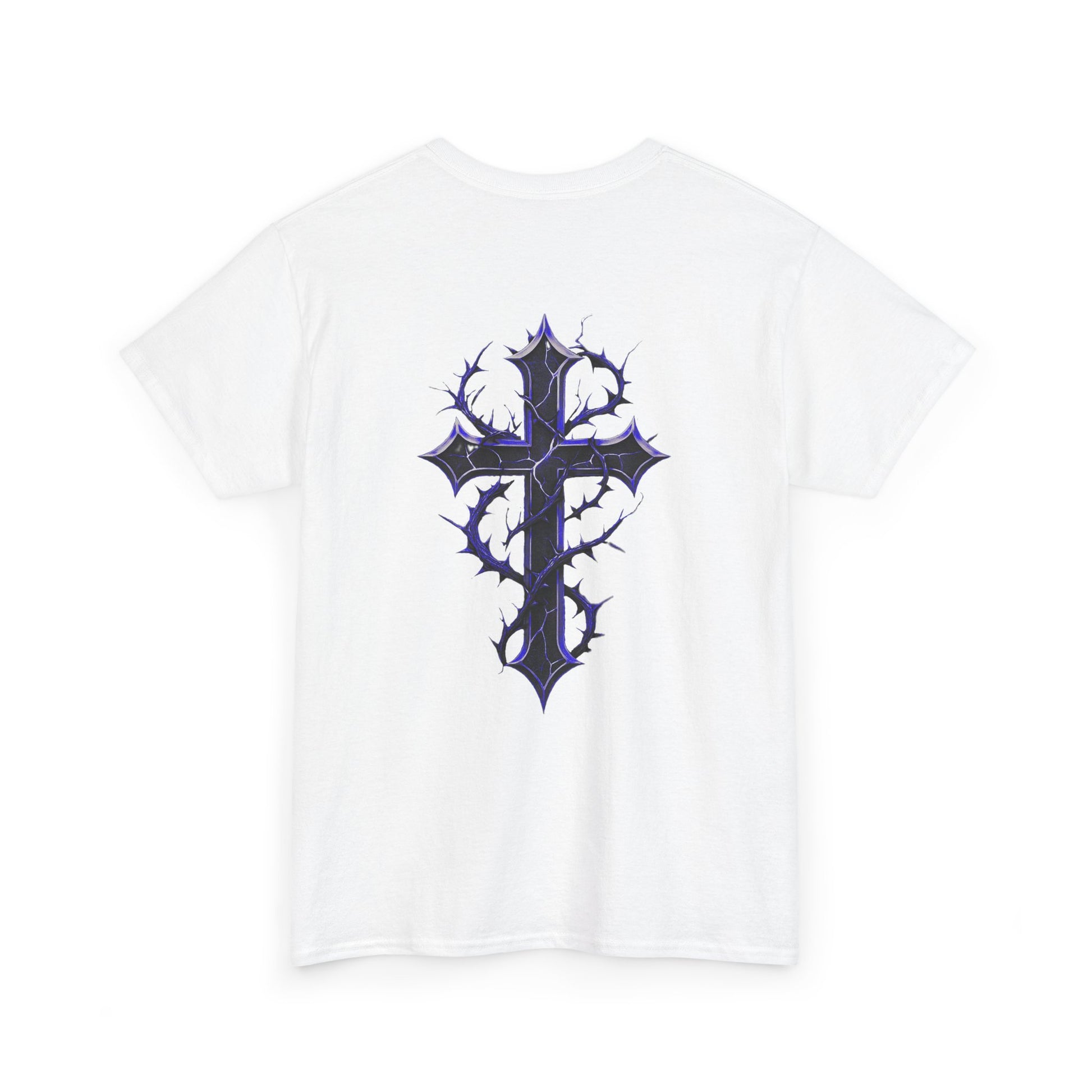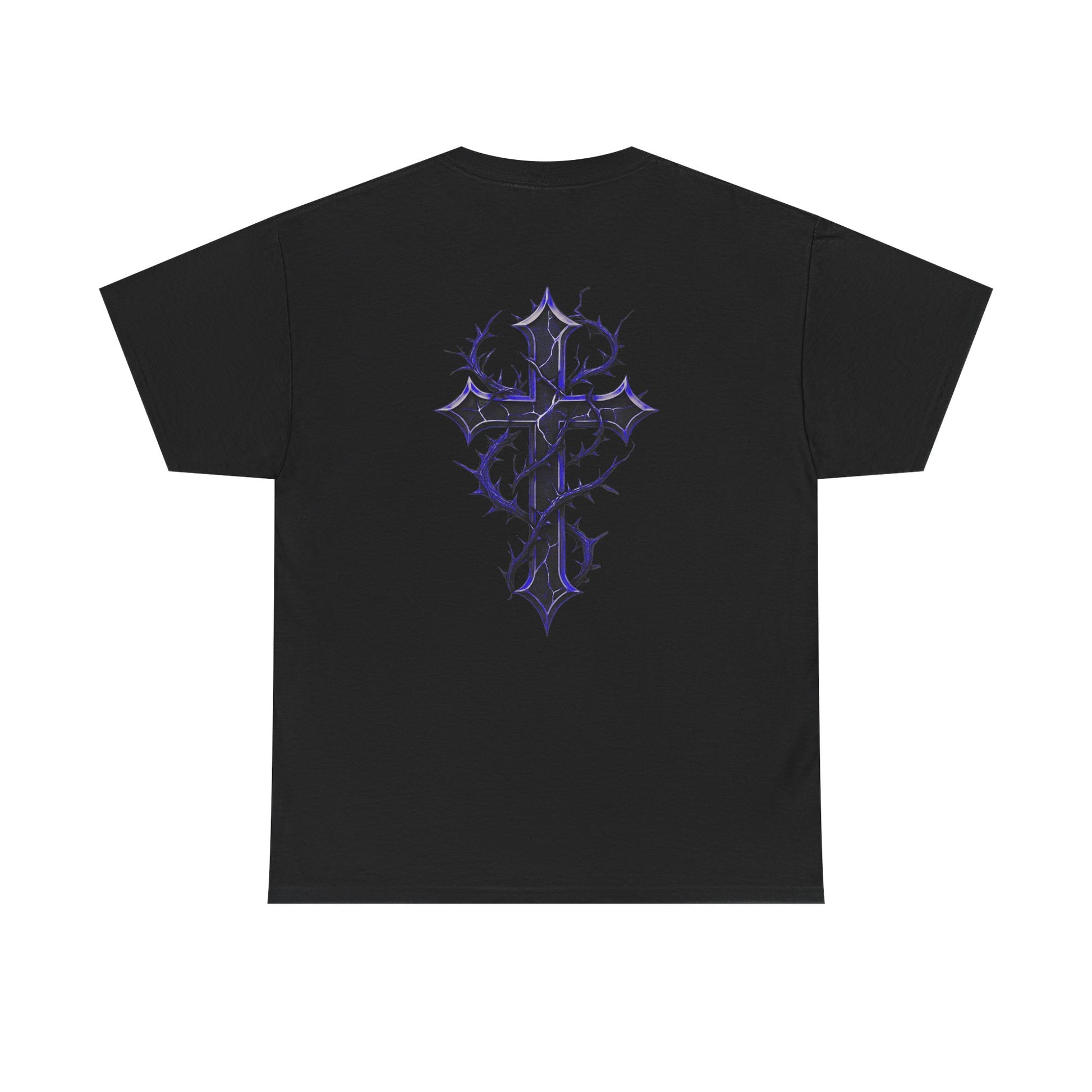A clean, heavyweight tee that channels a brooding, alt-spirit without shouting. The front carries a Gothic “Fallen Angels” wordmark in purple tones while the back features a thorn-wrapped cross rendered with dark gradients — bold yet contemplative. The medium-weight cotton hold gives structure to the print so the graphics sit flat and crisp. Wear it layered under a denim or leather jacket on cooler nights, or on its own to let the art speak. It’s suited to nights at underground shows, late walks through neon-lit streets, or quiet mornings with a strong coffee — for those who like their style moody, tactile, and unmistakably personal.